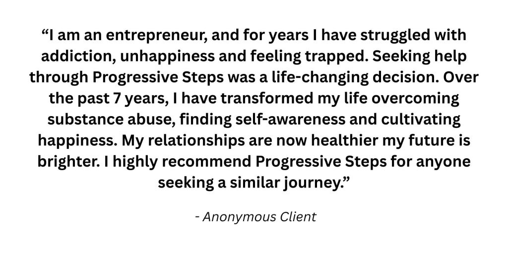 At Progressive Steps, we offer personalized, evidence-based treatment and compassionate support that empowers those struggling with addiction and their loved ones to rebuild lives, restore relationships, and embrace hope for a brighter future one step at a time.